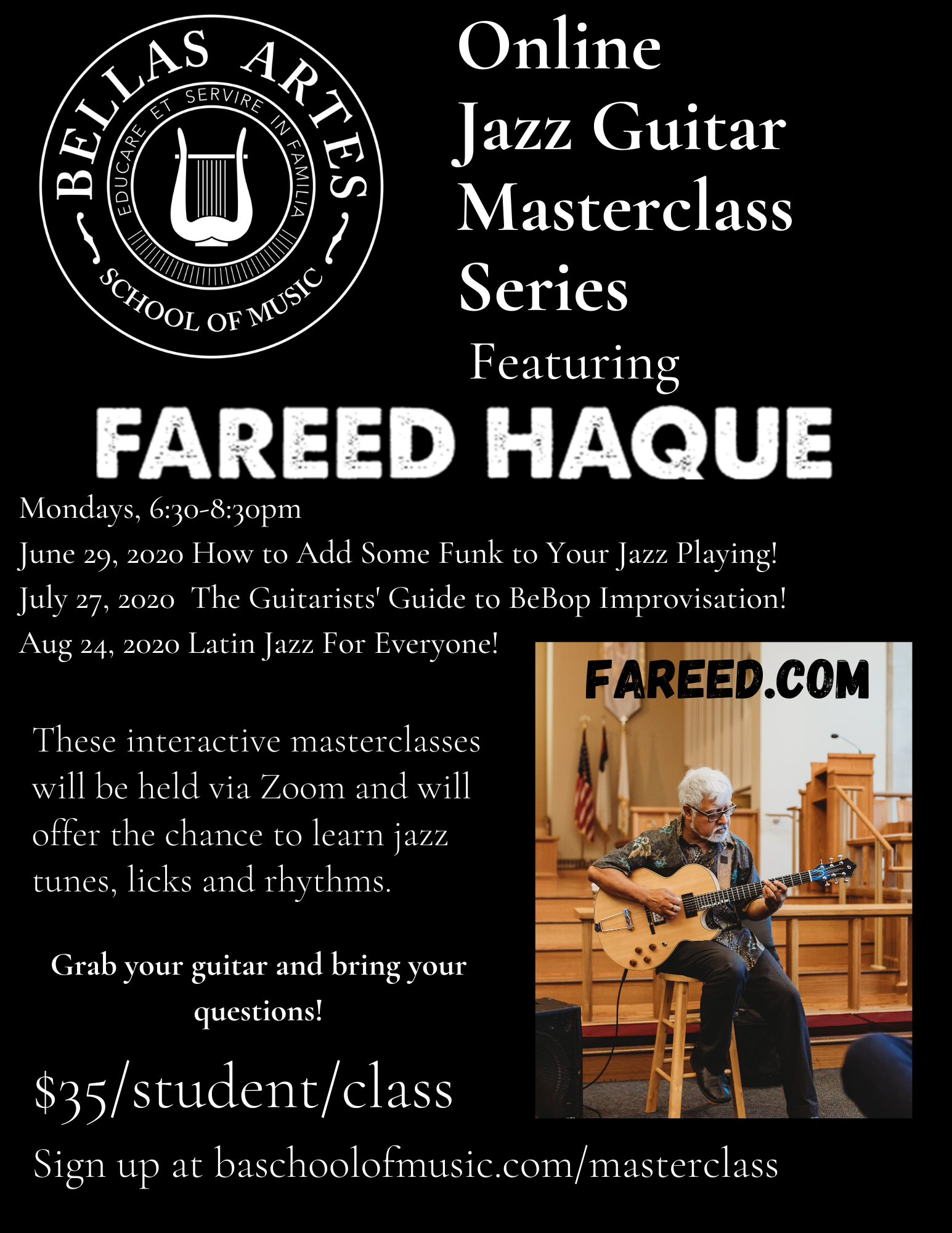 SUMMER 2020 ONLINE JAZZ GUITAR MASTERCLASS SERIES WITH FAREED HAQUE