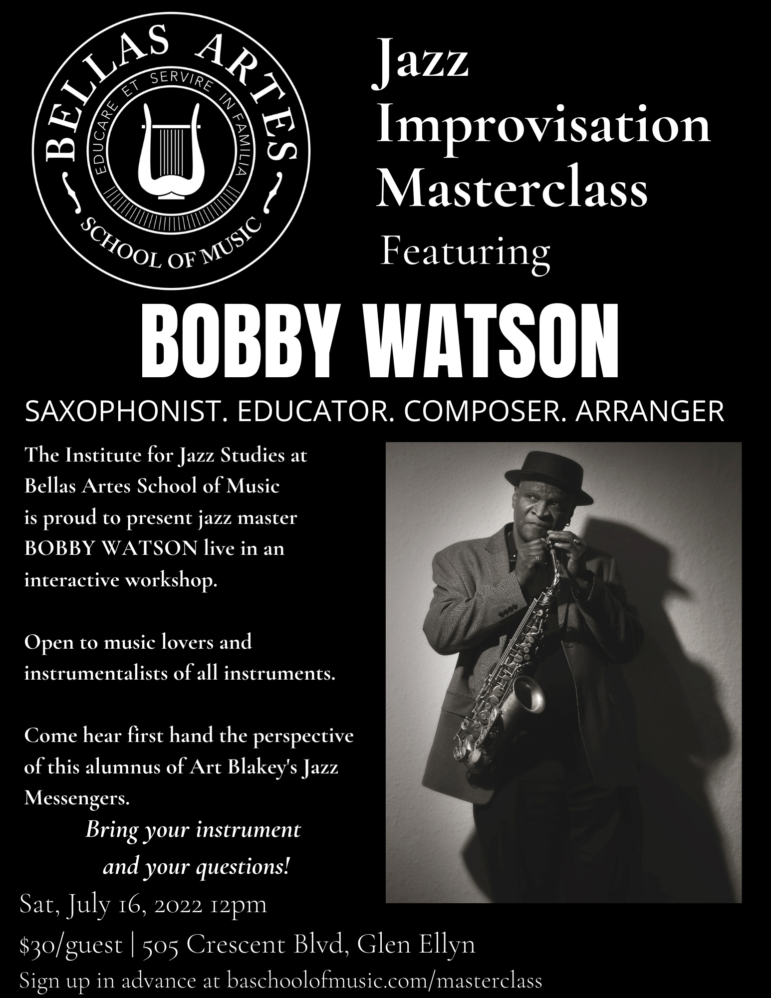 JULY 16, 2022 BOBBY WATSON - JAZZ IMPROVISATION WORKSHOP